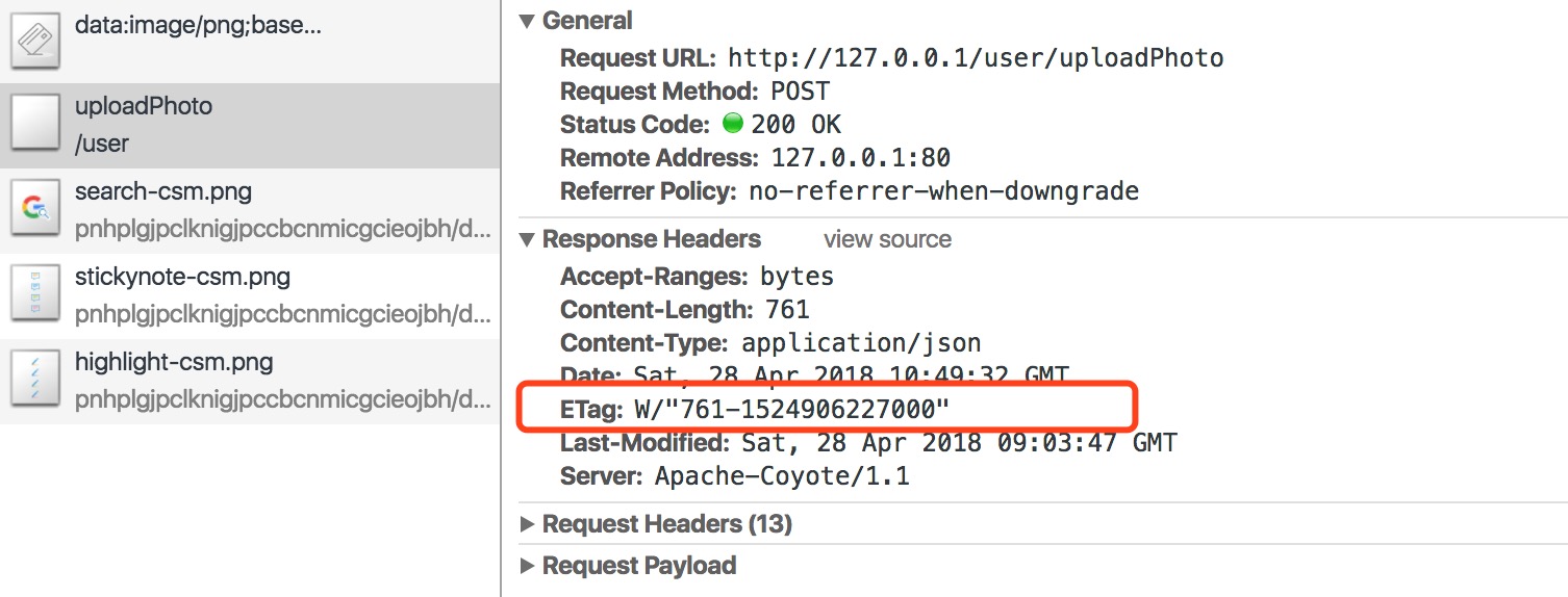 验证token就可以解决上述问题。服务器创建并返回存储在请求头ETag字段中的任意标记,这些标记通常是现有文件的散列或其他内容的指纹。客户不需要知道如何生存此令牌,但需要知道在随后的请求中将它们发送到服务器。如果令牌(token)相同,则资源没有改变,不需要重新获取资源。